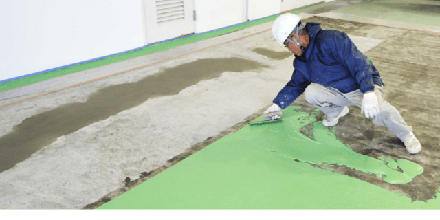 これまで難しかったコンクリートや金属など、あらゆる床面に施工が可能です。強力な特殊接着剤を使用しており、トラックやフォークリフトの通行にも耐えれるほど堅牢で高い耐久性を誇ります。